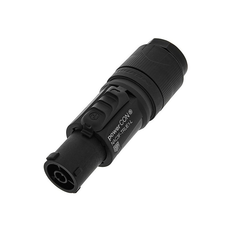 PowerCon TRUE1 è il nuovo connettore di alimentazione in corrente alternata. Il sistema di connettori monofase serrabile è estremamente robusto ed è tra i primi del suo genere con caratteristiche IEC 60320 come capacità di interruzione, progettato per i 250 V/16 A. Ideale nei concerti e nelle produzioni in cui il materiale elettrico viene spesso concentrato in una piccola area, facendo della sicurezza una priorità assoluta. Include connessioni di ingresso e di uscita per un semplice daisy chaining fra le attrezzature, il PowerCon TRUE1 ha anche i requisiti di alta densità con un connettore unico che combina un accoppiatore di ingresso e di uscita. Grazie alla sua elevata capacità di interruzione, i è possibile connettere grandi quantità di materiale elettrico, senza preoccuparsi che le interruzioni di corrente possano causare un arco elettrico. Ciò fornisce una certa sicurezza per gli operatori del PowerCon TRUE1. Il cavo offre protezione IP65. e sistema di chiusura Twist-Lock, per impedire eventuali disconnessioni accidentale